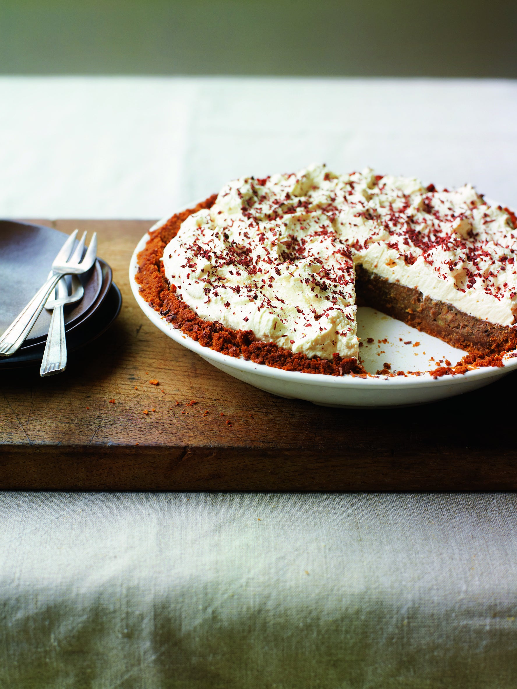 Whip the cream, golden icing sugar and vanilla to form nice soft peaks. Pile high on top of the pie and sprinkle generously with the grated chocolate. Chill for at least 1 hour before serving.