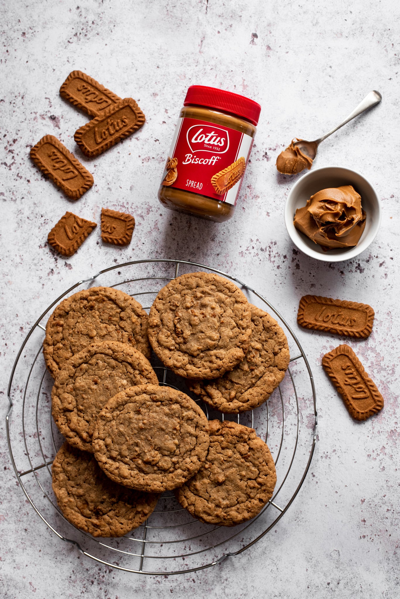 This recipe for Biscoff Cookies is really easy to follow. Biscoff and Cookies are two of our favourite things and the result of this recipe is spectacular. A melt-in-the-middle biscoff centre surrounded by a golden beautiful cookie baked to perfection. You can either make these HUGE or a normal size... just add an extra minute onto the bake time if you're going large.