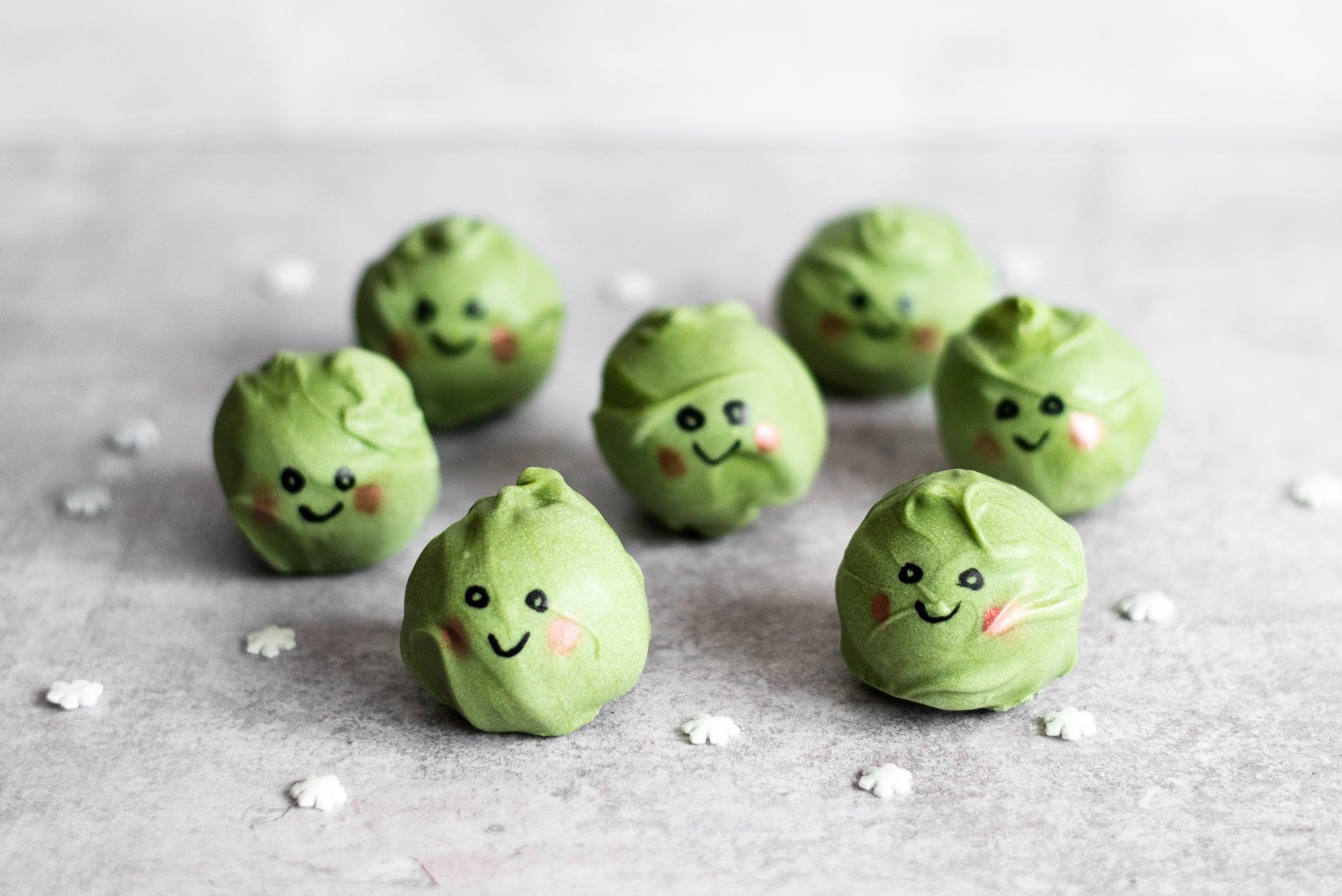 These little cake pops are adorable and sure to become a festive family favourite. Don't worry though, no real Brussel Sprouts were harmed in the making of these, they are actually made of the most incredible tasting chocolate and peanut butter truffle, using our favourite local Proper Nutty Peanut Butter. Coat with green candy melts and decorate with little faces to really bring them to life.