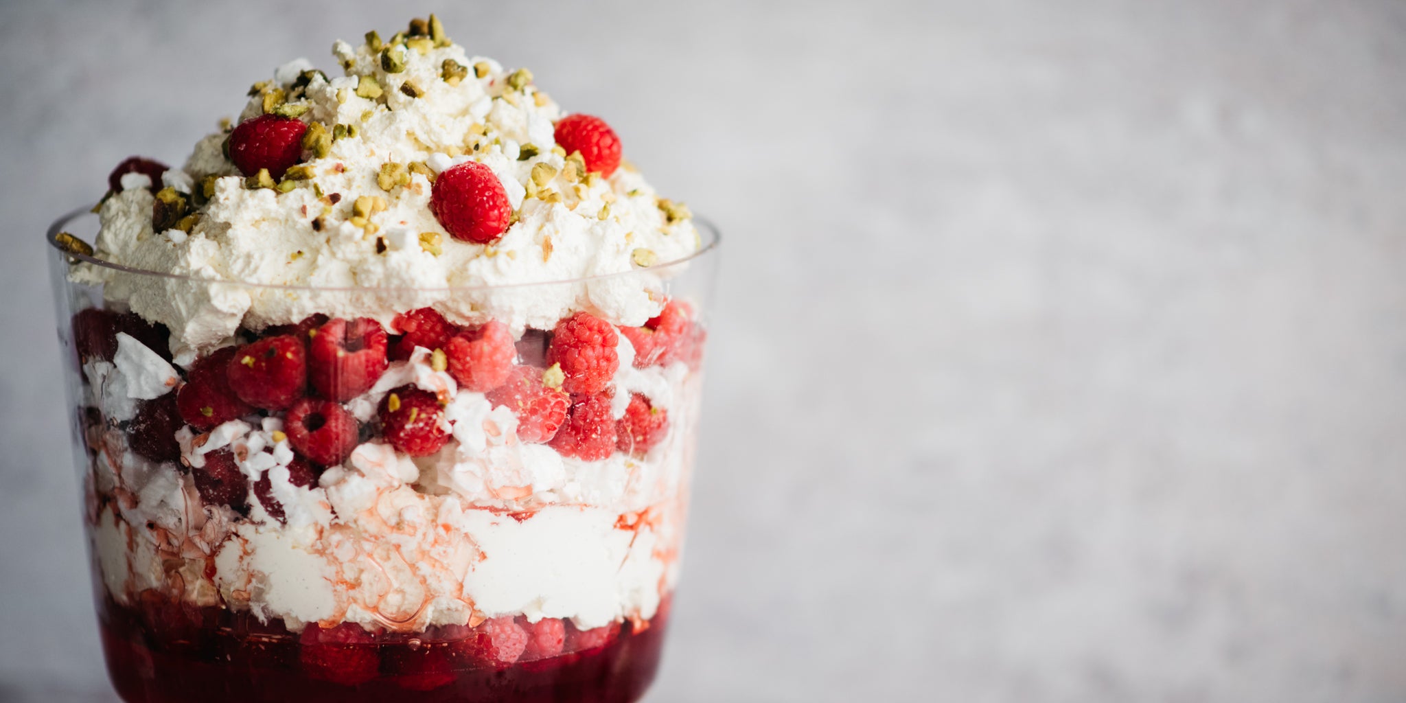 Add a further layer of the Pimm’s raspberries and top with the remaining vanilla cream.