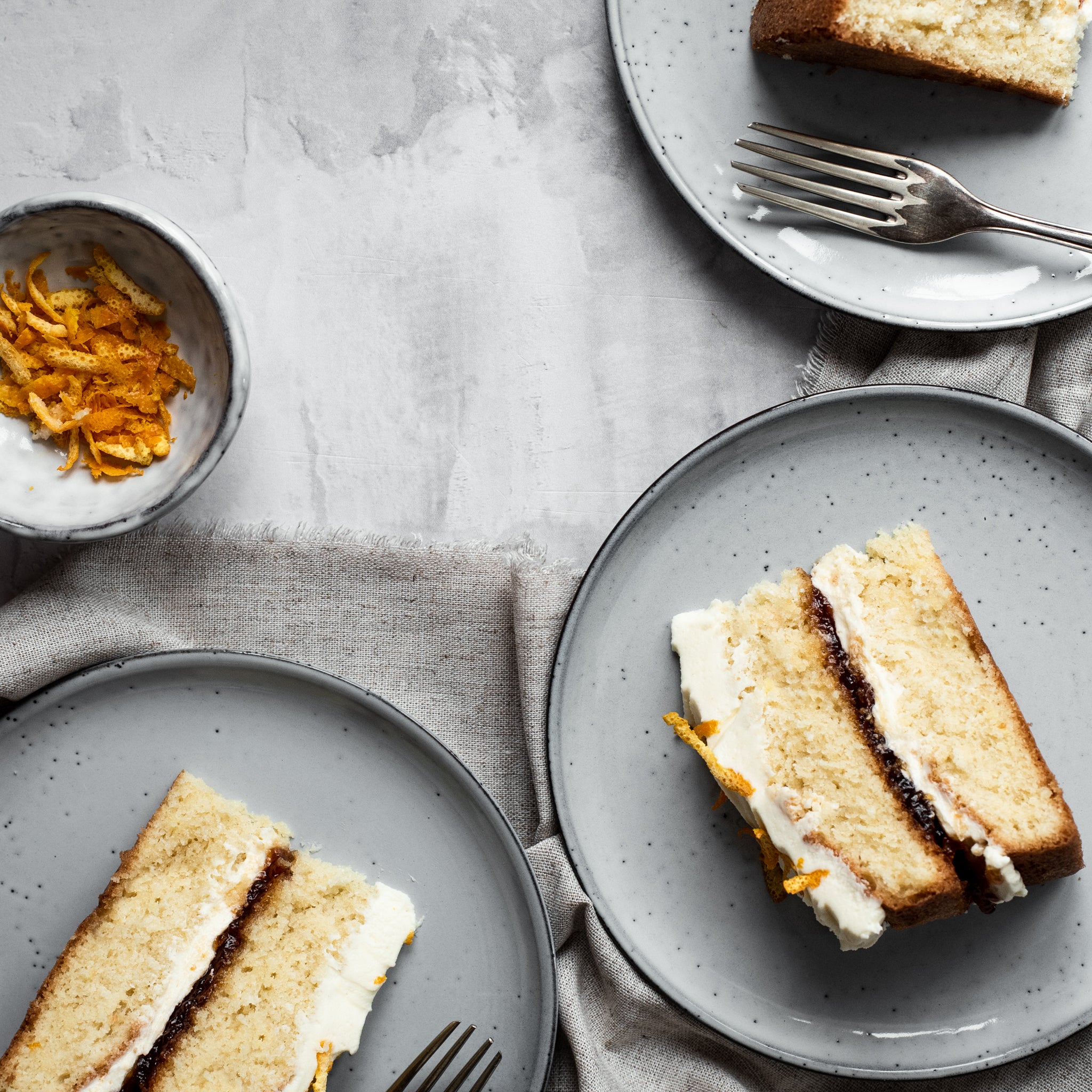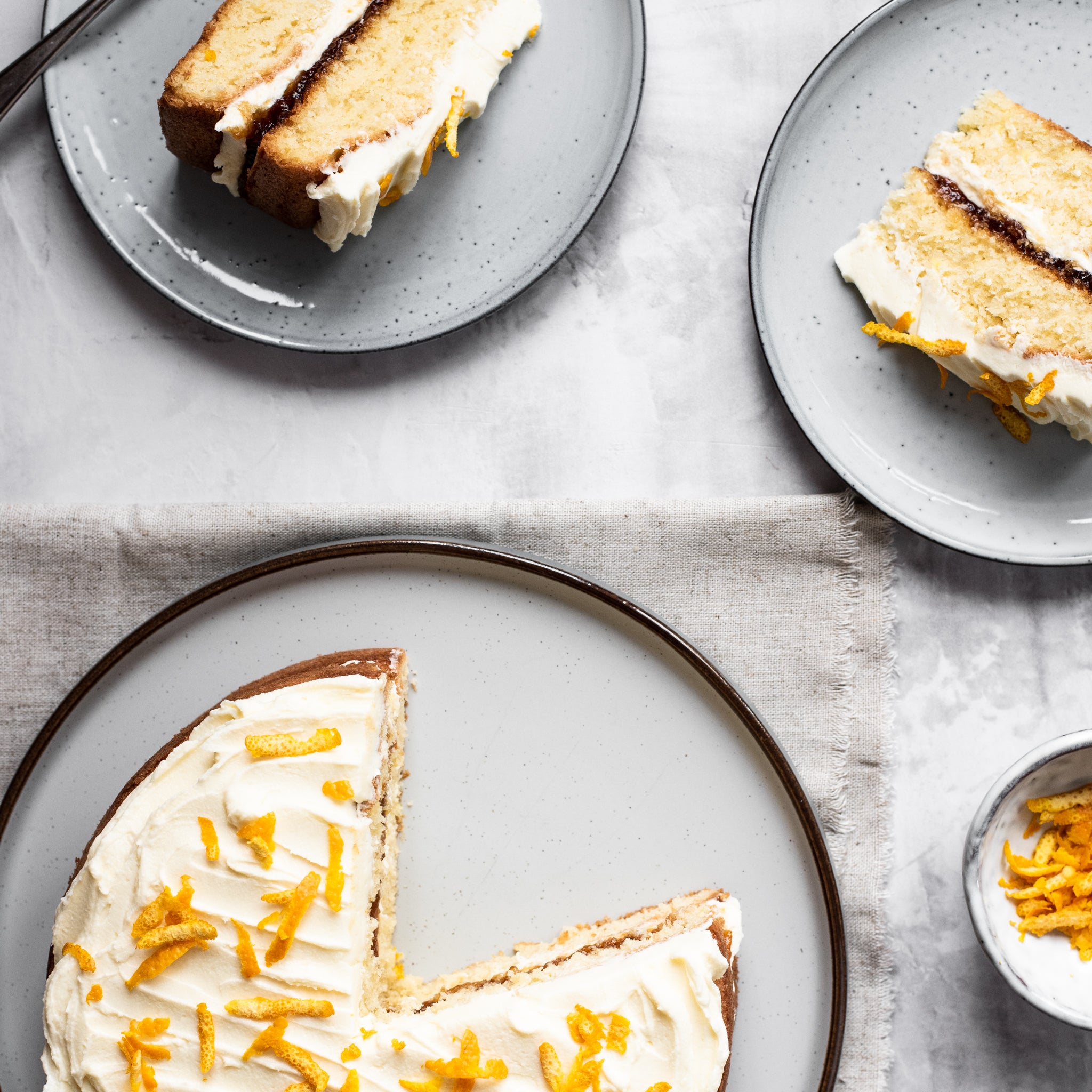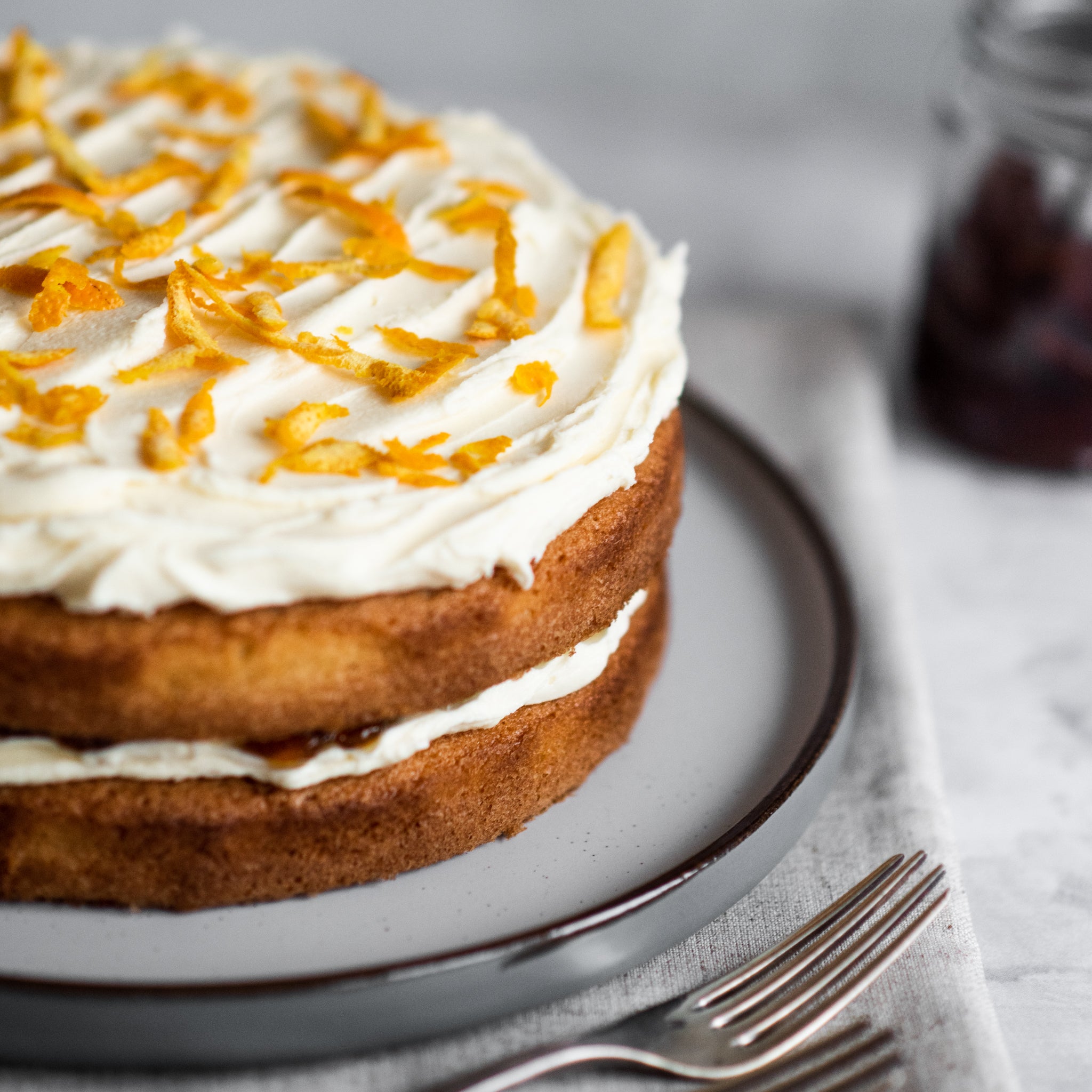 Sandwich the sponge halves together with a layer of marmalade and a thin layer of the buttercream. Spread the buttercream thickly on top of the cake and sprinkle with the finely grated orange peel.