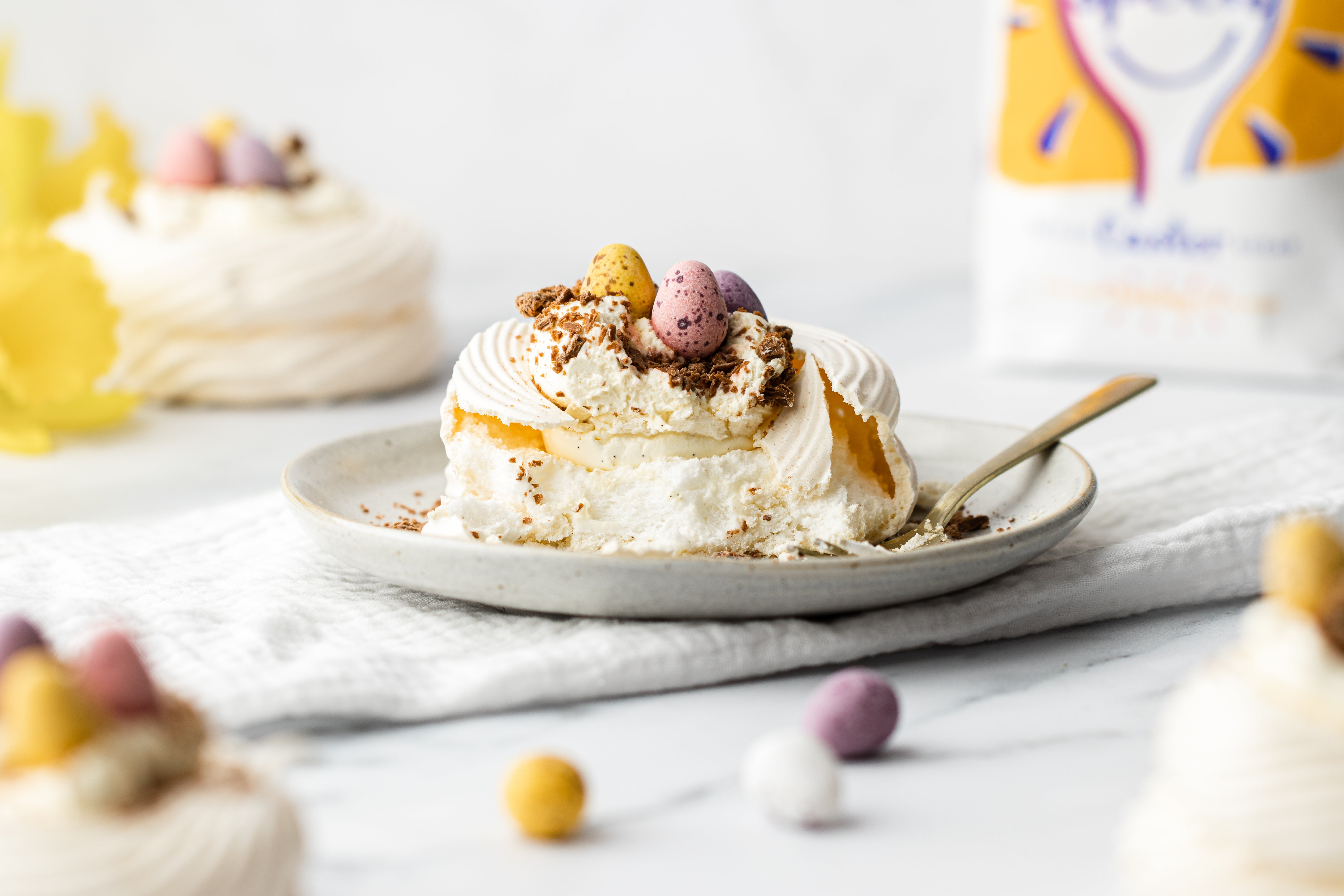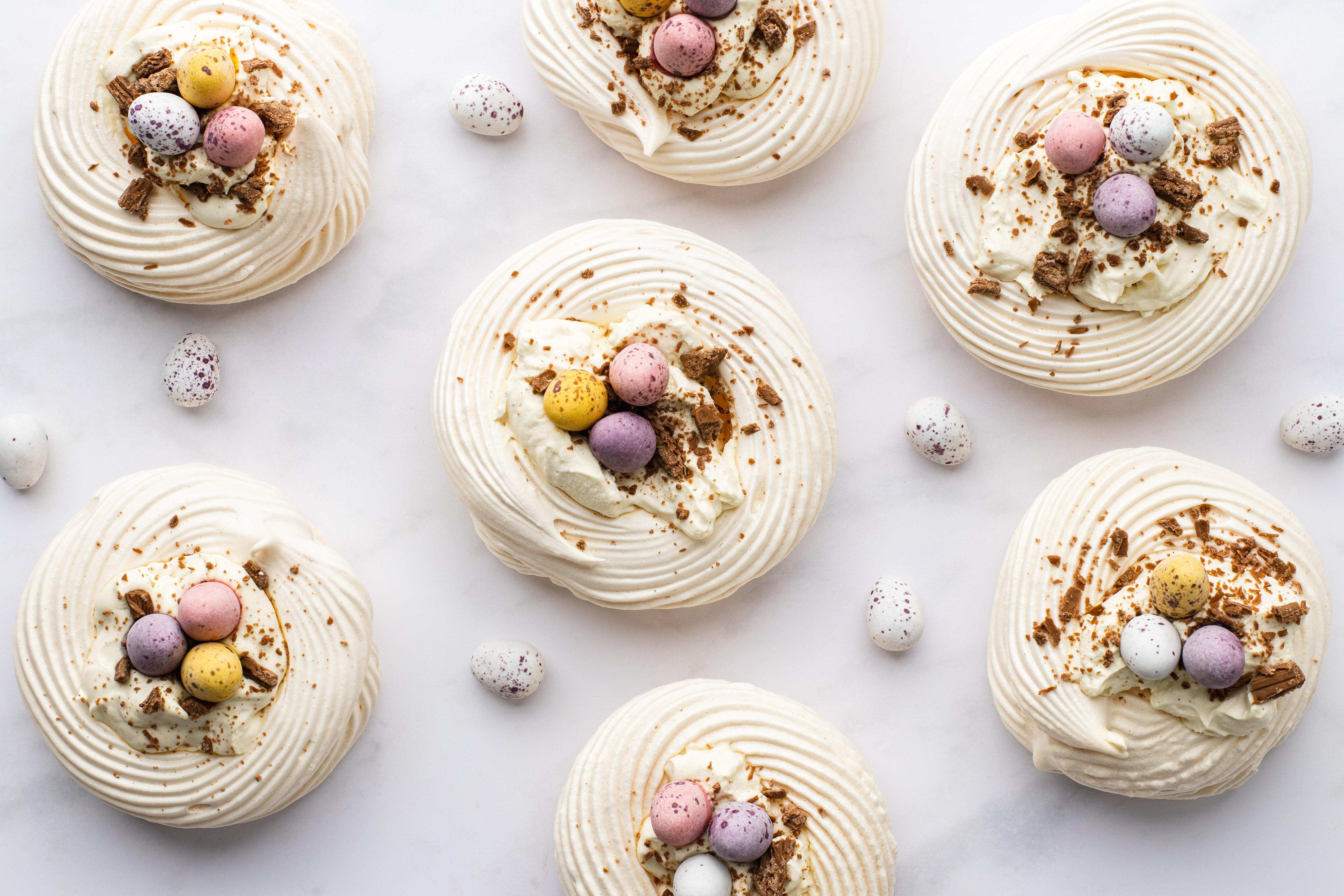 For the nests: Preheat the oven to 120ºC fan / 140°C conventional and line two baking trays with greaseproof paper.