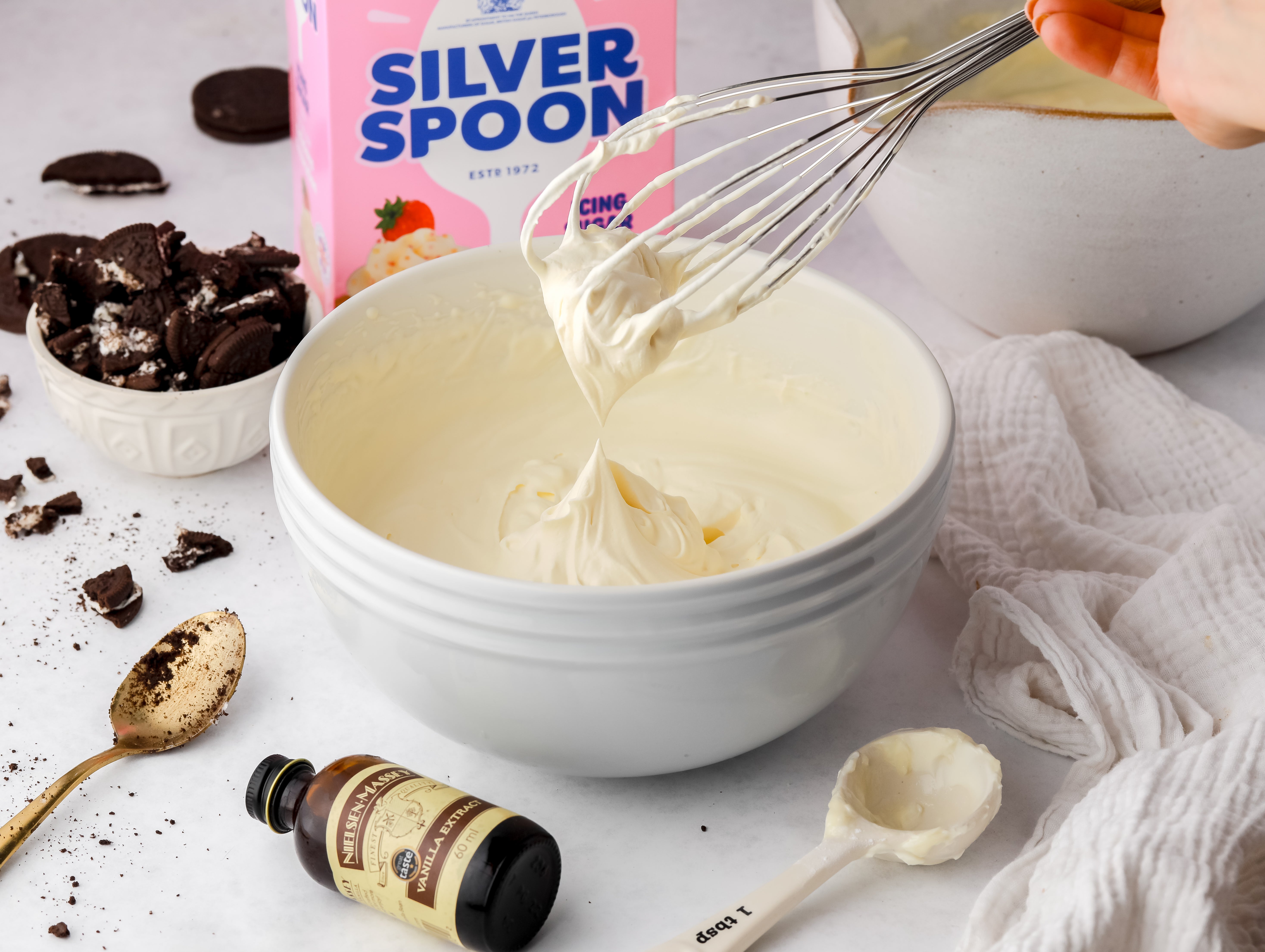 If your no bake Oreo cheesecake is too runny, you may need to leave it longer to set. To create a thick, velvety filling, ensure that you beat the whipping cream to a stiff peak consistency. This means that when the whisk is removed the cream should stand upright, forming a peak on top. If the peak droops, this is soft peak stage and your cream will need to be whipped a little bit longer. Take care not to over-beat your cream cheese, as this can cause it to separate and produce a runnier cheesecake consistency.