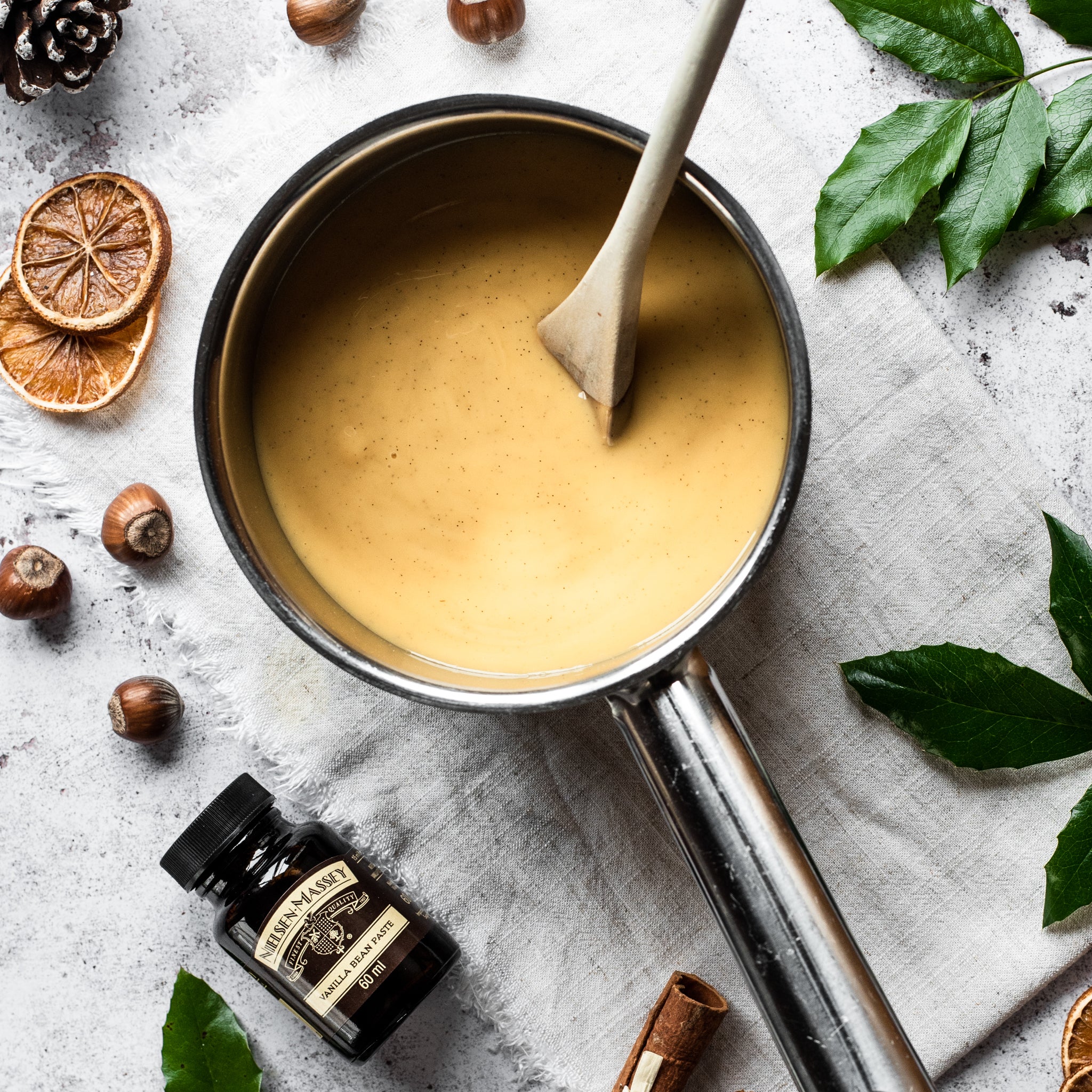 What's a crumble without the custard? This recipe is for a simple, silky smooth homemade vanilla custard. Served warm or cold, it's the perfect side for any pudding. Flavoured with delicious Nielsen-Massey vanilla bean paste, the little flecks of vanilla give this custard the 'wow' factor when it comes to flavour and appearance.
