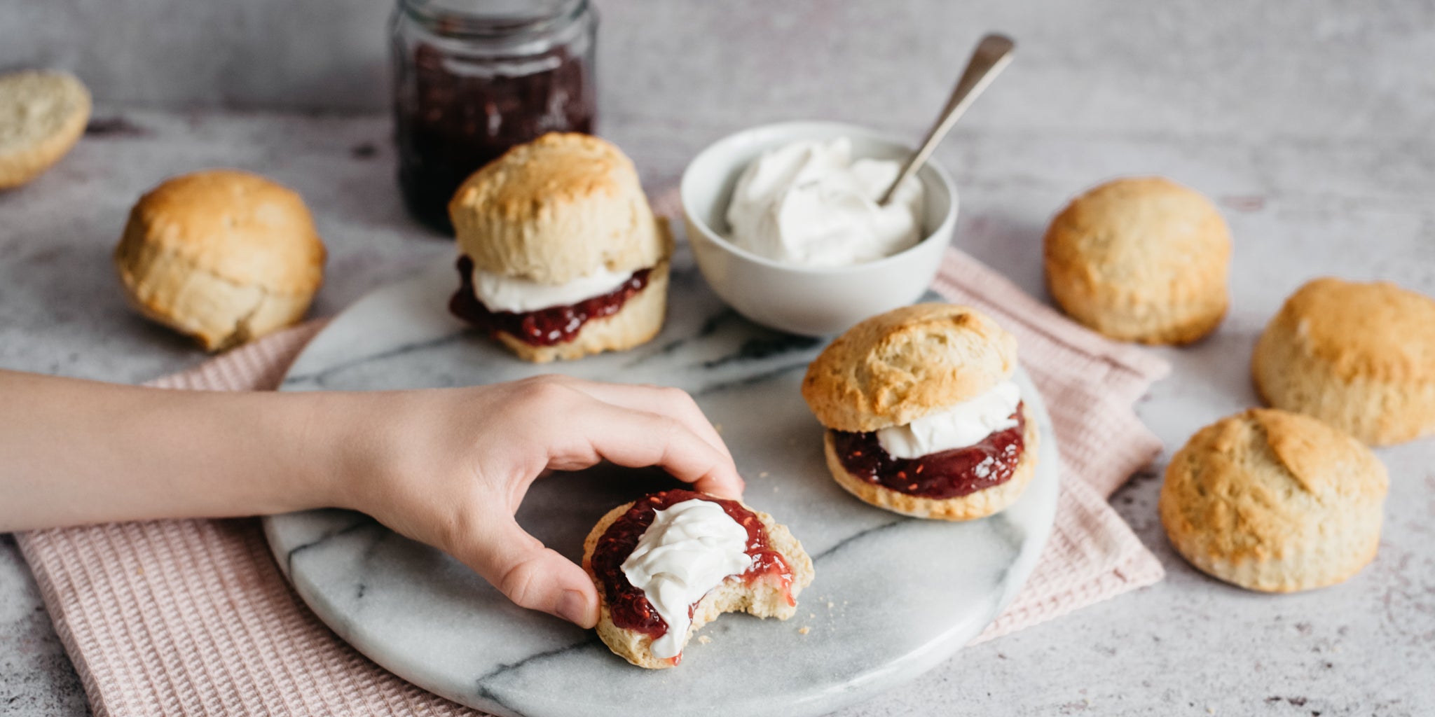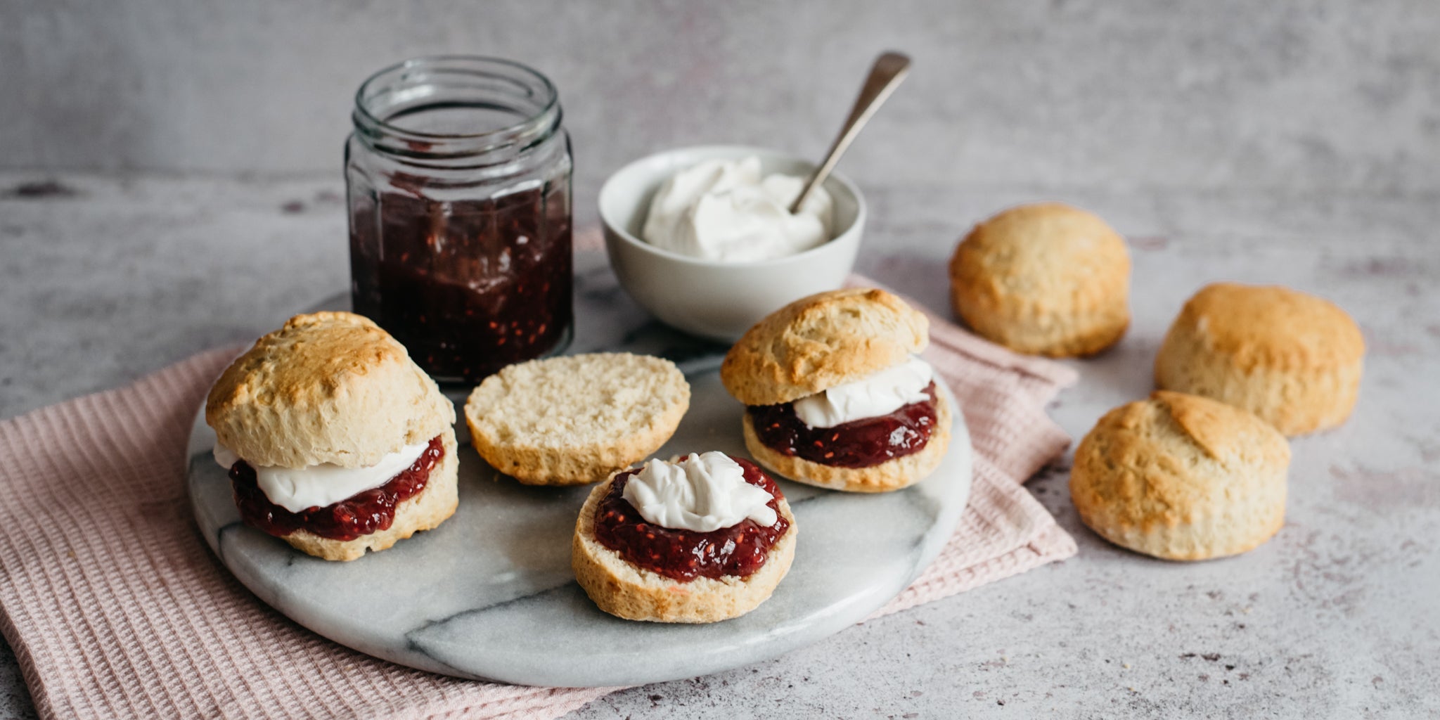 Once cooled, serve with jam and a little plant based creme fraiche if desired