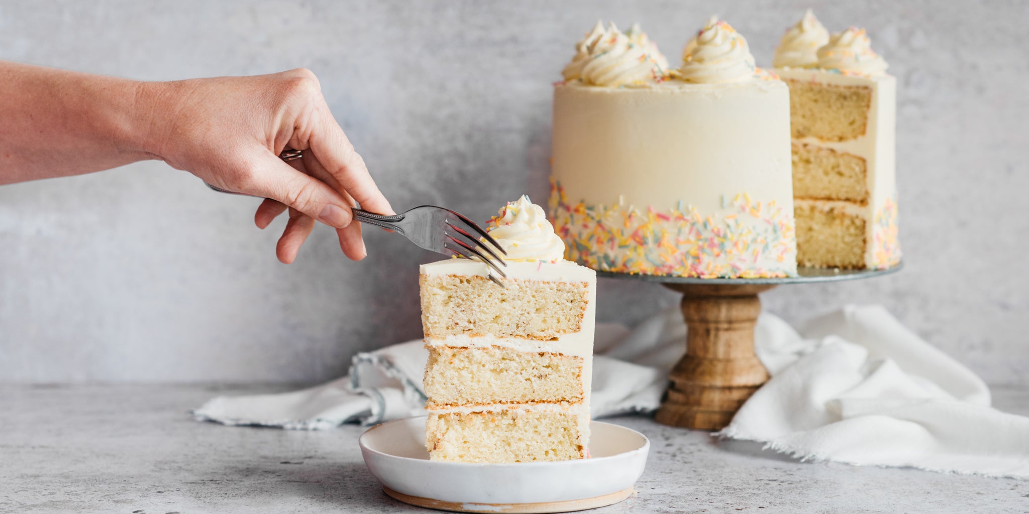 Meet your new go-to vegan classic vanilla sponge recipe. Created by our friend Juliet Sear from 'Juliet Bakes', this recipe uses flax meal to give a great texture and consistency. The sponge is as light and fluffy as a non-vegan sponge cake. This vanilla sponge cake recipe will work really well for any occasion; Birthday's, Christmas. Watch our video to see how to make the perfect rainbow vegan sprinkles to decorate.
