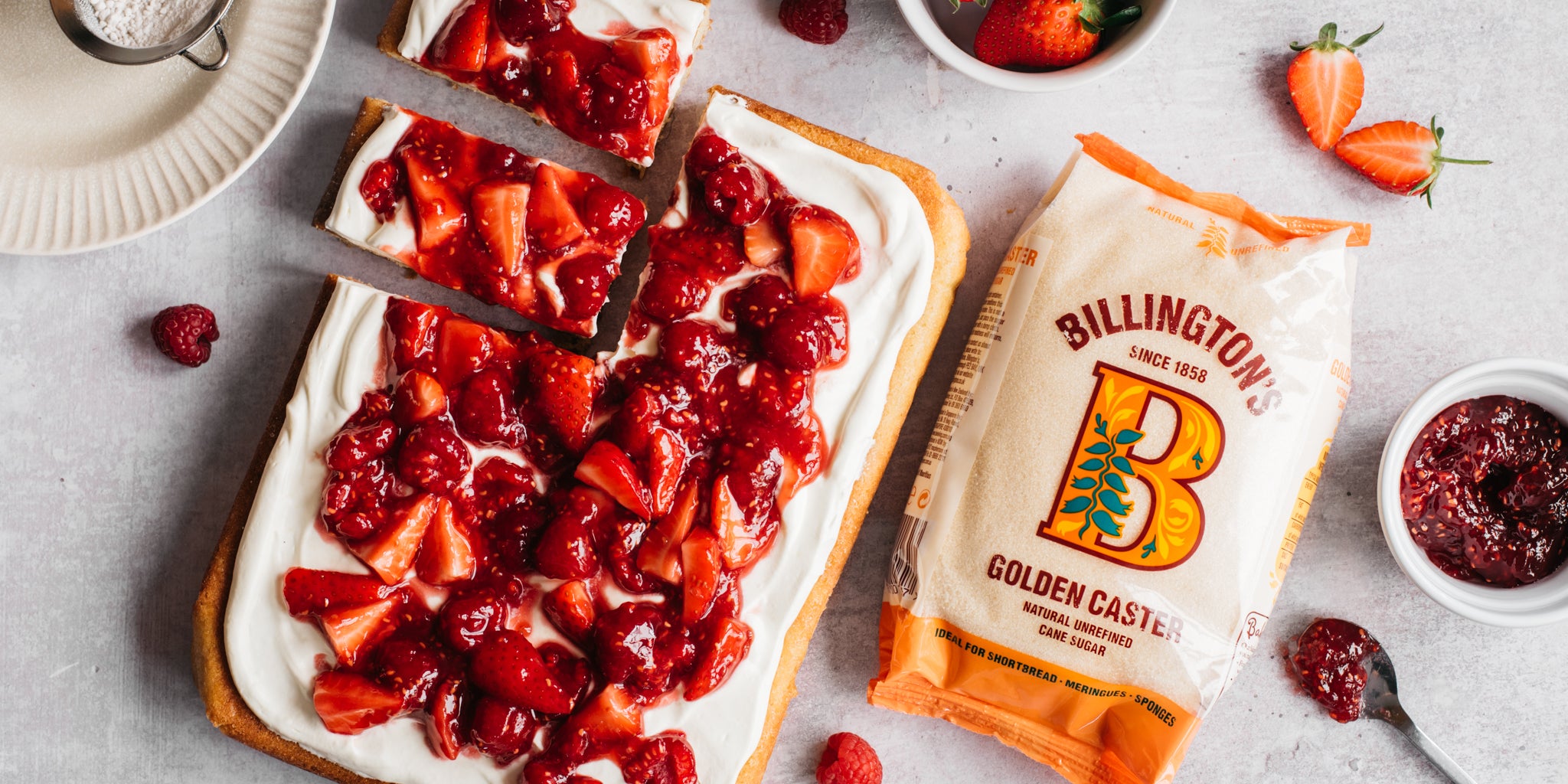 Using Billington's Unrefined Golden Caster Sugar, Mob have created the fluffiest golden sponge cake to form a show-stopping foundation to this yummy traybake. To top things off they've also used Billington's Unrefined Golden Icing Sugar to dollop all over the sponge, giving a delicious texture and caramelly depth. We promise you'll be going back for seconds (or thirds... we won't tell!).